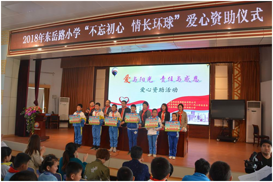 4月28日是青島環(huán)球集團第五十二個建廠紀(jì)念日,為了迎接第五十二個建廠紀(jì)念日,傳遞環(huán)球人的感恩之心,關(guān)愛之心,4月27日上午環(huán)球集團聯(lián)系關(guān)心下一代工作委員會、黃島區(qū)慈善總會,共同走進(jìn)黃島區(qū)東岳路小學(xué)(原瑯琊臺小學(xué)),開展了“不忘初心,情長環(huán)球”愛心捐助活動。