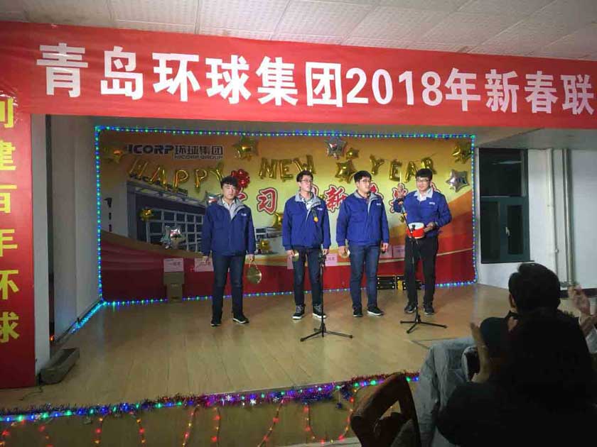 在晚會中集團團委的年輕人帶來了多個節目,既有青春洋溢、喜慶歡快的舞蹈《開門紅》,又有說學逗唱、生動活潑的單口相聲《開張大吉》,還有歡快動感、激情滿懷的歌曲《恭喜發財》、《向天再借五百年》。來自紡機公司技術團隊自編、自導、自演的三句半《擰成一股繩,啟程新時代》,訴說了環球人身邊事,接地氣、話家常、很溫暖、振人心,細數了2017年度集團各行各業的收獲,暢談了2018年對美好未來的期待與展望,引起大家共鳴,贏得了陣陣掌聲。